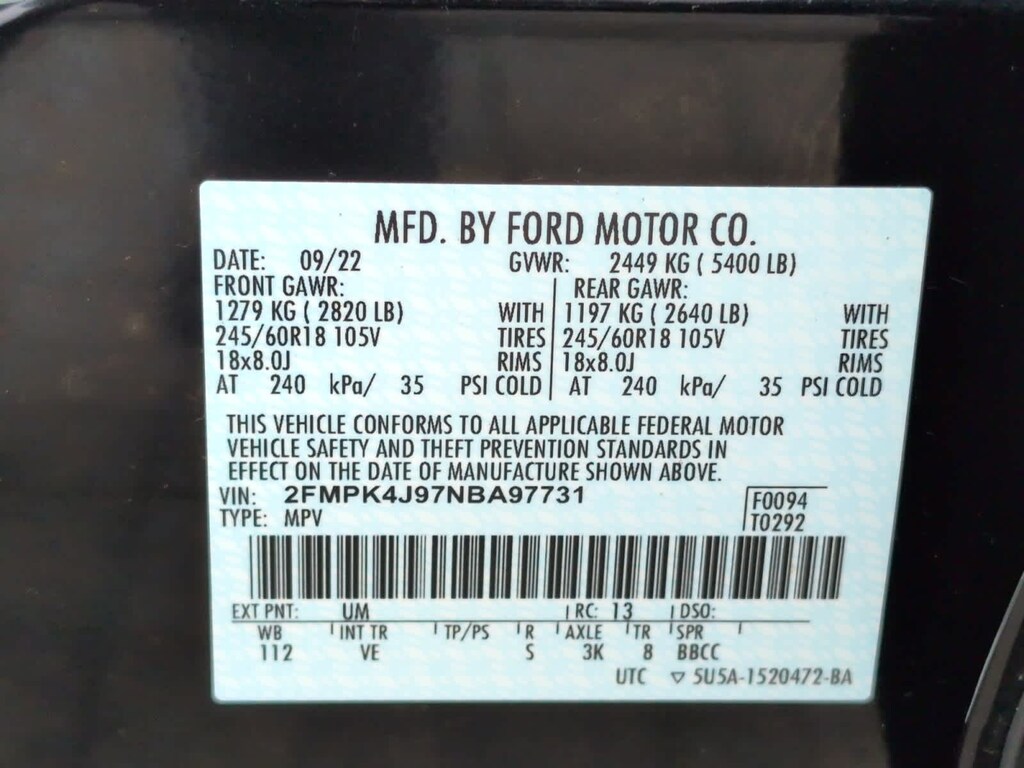 - Forward collision: Ford Co-Pilot360 - Automatic Emergency Braking (AEB) mitigation