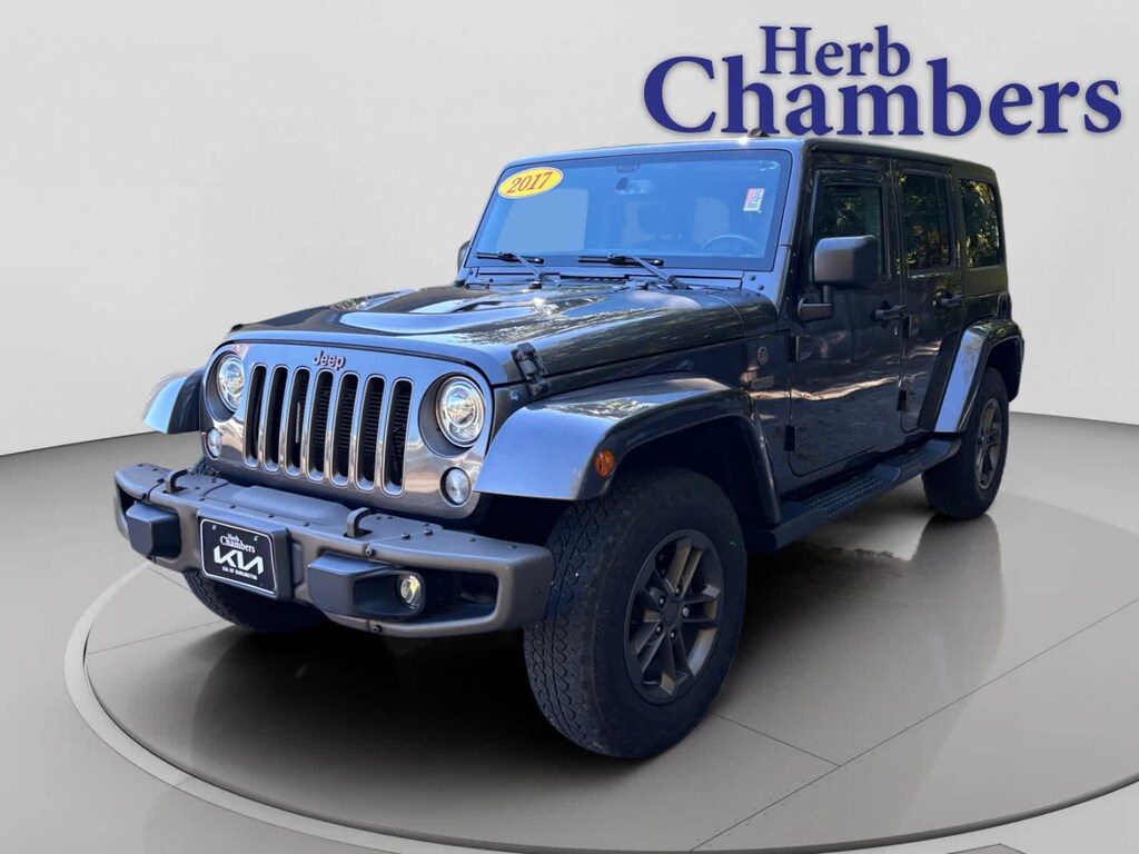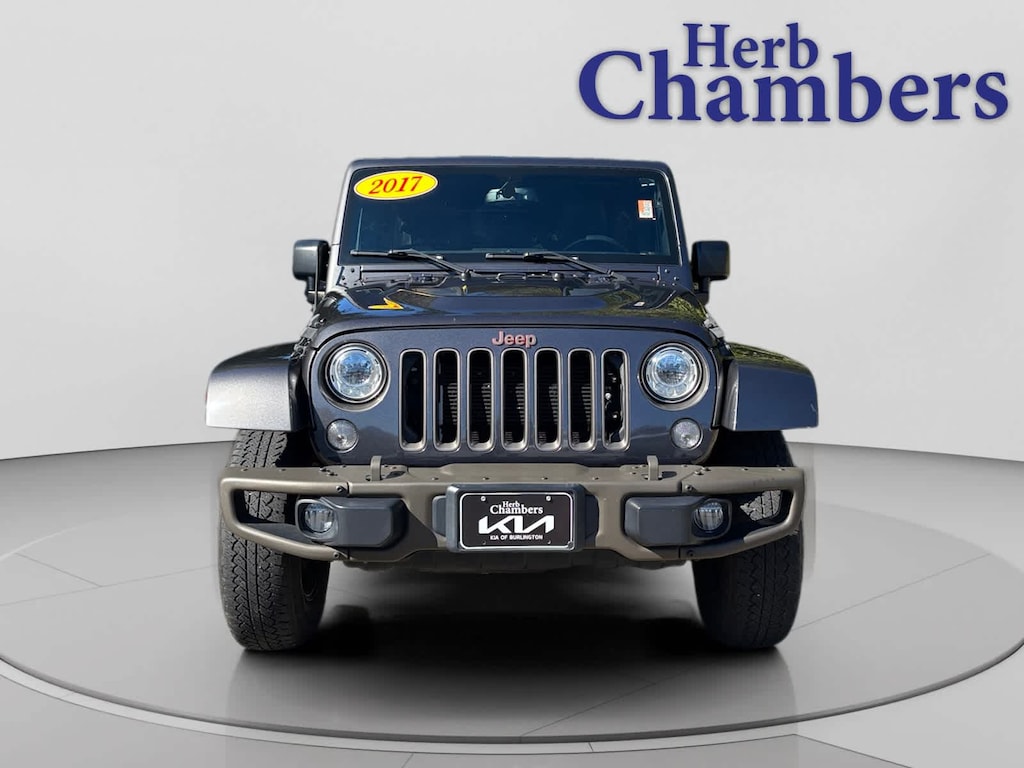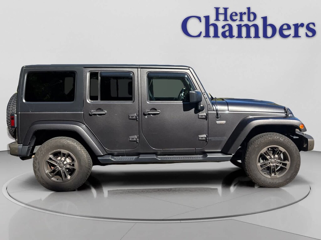 4x4 Jeep 75th Anniversary with Granite Crystal Metallic Clearcoat exterior and Black interior features a V6 Cylinder Engine with 285 HP at 6400 RPM*. 5-Day 100% Money Back Guarantee / 30-Day 1,500 Mile Vehicle Exchange and, A complete Vehicle Portfolio & CarFax. Visit www.herbchamberssmartpricing.com for complete details. Only a Herb Chambers CERTIFIED Pre-Owned vehicle receives a rigorous Multi-Point Inspection This Wrangler Unlimited is priced $3,400 below J.D. Power Retail. Was $21,999.
